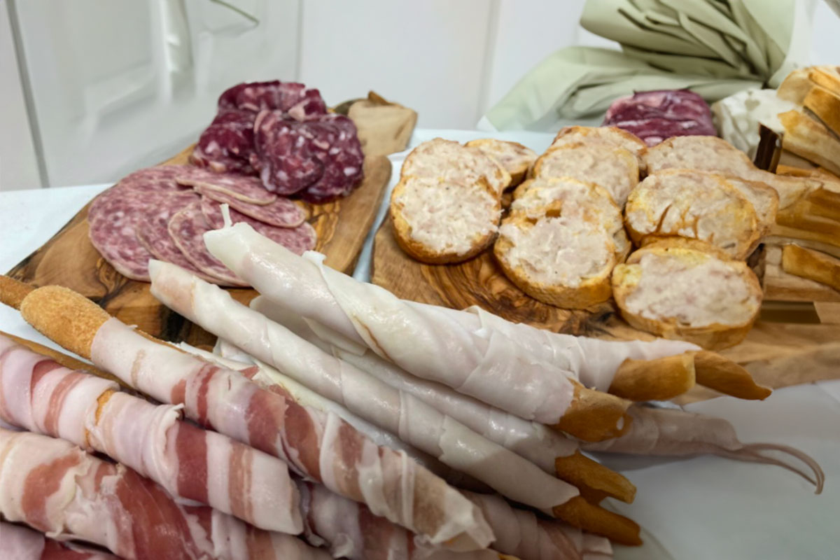 Qui nascono i loro ottimi salami crudi e cotti a Km 0, ma anche gli agnolotti tipici monferrini con le tre carni arrosto e, ogni settimana, anche conserve e marmellate sempre nuove, che variano con le stagioni. A Golosaria Milano si presentano come cucina di strada, con un menu irresistibile che vede due proposte fuoriclasse come il panino con il bollito di Moncalvo e la battuta al coltello di manzo (razza piemontese).
