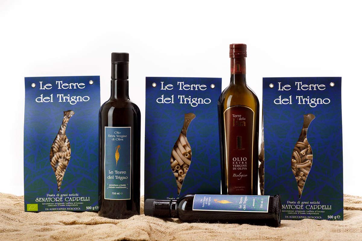 Impegnati da generazioni nella coltivazione di cereali e di olive autoctone nel cuore del versante abruzzese della rigogliosa e incontaminata Valle del Trigno, ad inizio del terzo millennio, adottano il regime biologico e si dedicano alla produzione di olio Evo e alla trasformazione artigianale di grani antichi ( Senatore Cappelli, Solina e saragolla) in pasta. Della prima, ottenuta con spremitura a freddo e senza filtrazioni, fanno parte l’olio Evo Bio “Le Terre del Trigno”, ottenuto da cultivar autoctone di varietà Gentile di Chieti, Cucco e olivastro, raccolte per brucatura a mano nei loro poderi situati ad un’altezza tra i 300 ed i 700 msl, e molite unicamente mediante procedimento meccanico a freddo.