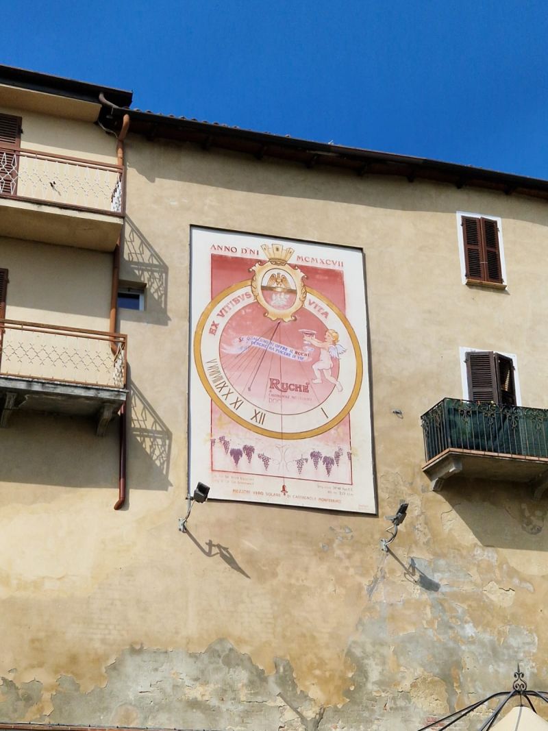 A segnare lo stretto rapporto tra Castagnole e il suo vino in piazza Statuto, la principale del paese, c’è la Meridiana del Ruchè. Dipinta sulla parete dell’edificio adiacente al municipio, la meridiana si dice essere la più grande al mondo dedicata al vino. Curiosa la rastrelliera in ferro per bici a forma di bottiglia che si trova all’ingresso del palazzo comunale. Sulla piazza si affaccia anche la Chiesa di San Martino, risalente alla metà del ‘700, con la sua facciata in mattoni rossi e che custodisce, al suo interno, tre tele del Moncalvo. Dall’altro lato della piazza, di fronte alla parrocchiale, una scalinata porta all’ingresso di una seconda chiesa, la Chiesa dell’Annunziata, anch’essa con facciata in mattoni. Sulla sinistra della Chiesa di San Martino, la via Al Castello diventa un camminamento panoramico affacciato sulle colline coperte di vigneti e boschi. Qui si trova anche il Museo del Ruchè ideato dalla cantina Ferraris (www.museodelruche.ferrarisagricola.com).