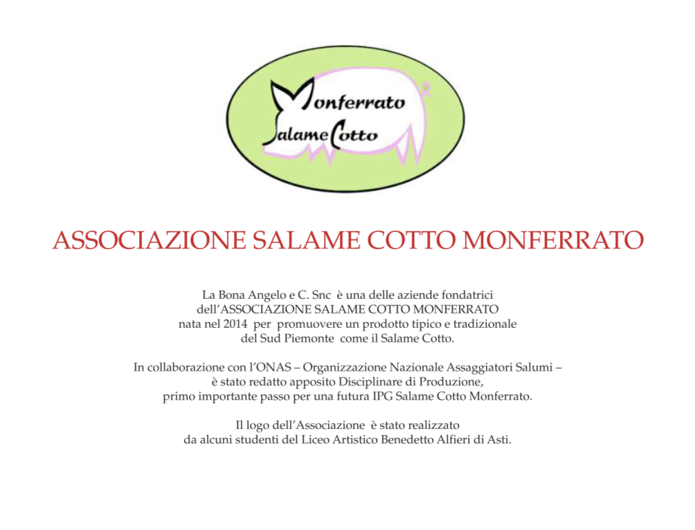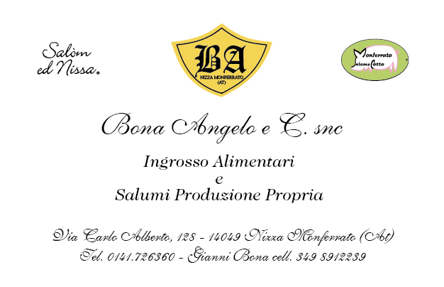 La specialità assoluta di Angelo Bona è il salame cotto, un salume nato povero e oggi riscoperto da pochi artigiani del Monferrato che si sono uniti in associazione per tutelarlo. Il forte legame dell’azienda con il territorio è ben visibile anche in altri eccezionali salami crudi come il Salom ed Nissa che ha nell’impasto il Nizza Docg che gli dona particolare morbidezza, il Salame al tartufo bianco, prodotto nella stagione invernale, e il Salame con Nocciola Piemonte Igp, caratterizzato da un gioco di consistenze davvero interessante. Da non perdere anche la salsiccia, la pancetta e, nella stagione invernale, il cotechino.