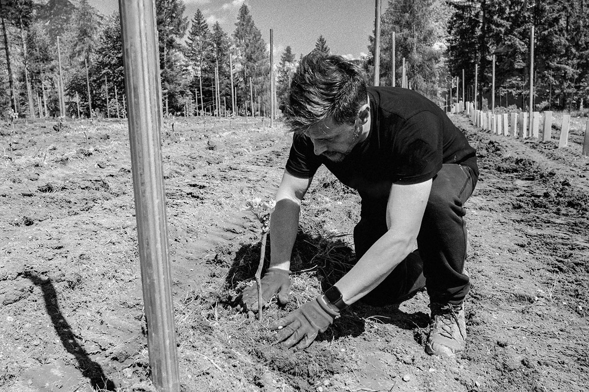 Cantina 837 nasce dall'incontro di tre figure unite dal legame con la montagna e il suo terroir unico: Claudio Coradazzi, Andrea Marcato e Roberto Baldovin. La sostenibilità è un impegno concreto, dalla vigna alla bottiglia, con l'uso di vitigni PIWI resistenti al clima montano che permettono di coltivare l'uva in modo naturale, riducendo l'uso di pesticidi anche dove la collina incontra la montagna. 837 metri infatti è l'altezza a cui si trova questa cantina in Carnia, in una sperimentazione che si pone anche come risultato della migrazione a nord (e in altitudine) dei vigneti in risposta al cambiamento climatico.