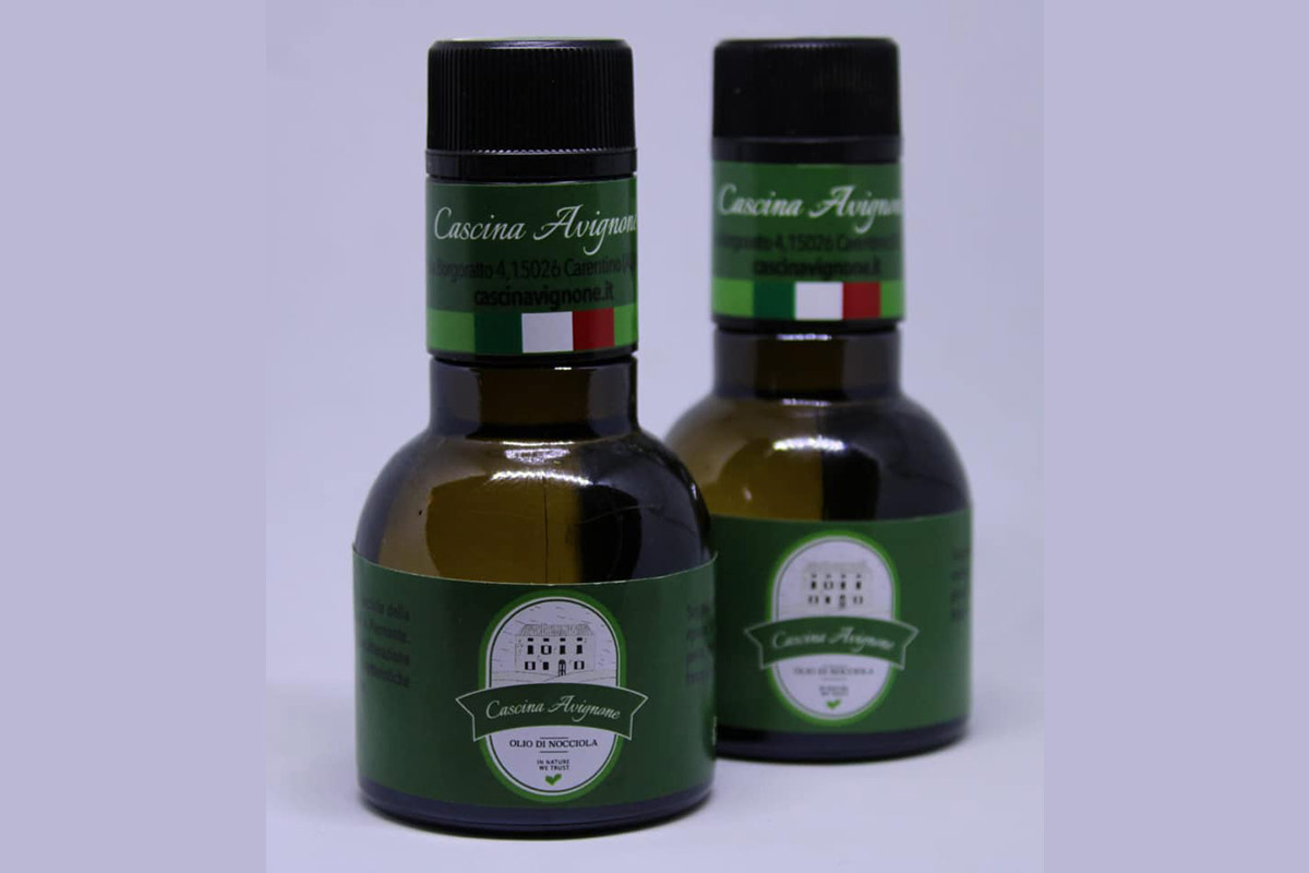 La materia prima è costituita dalle nocciole della varietà Tonda Gentile Trilobata certificate IGP “Nocciola Piemonte”. Dal raccolto ricavano l’olio di nocciola spremendo a freddo nocciole crude o leggermente tostate. Le due tipologie di olio che si ottengono sono decisamente diverse. L’olio ottenuto da nocciole crude è caratterizzato da un sapore delicato e profumato, arriva lentamente al palato per poi persistere nel gusto. Quello da nocciole tostate ha profumi e sapori più decisi e intensi.