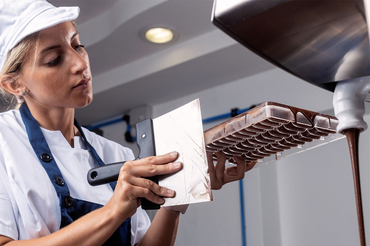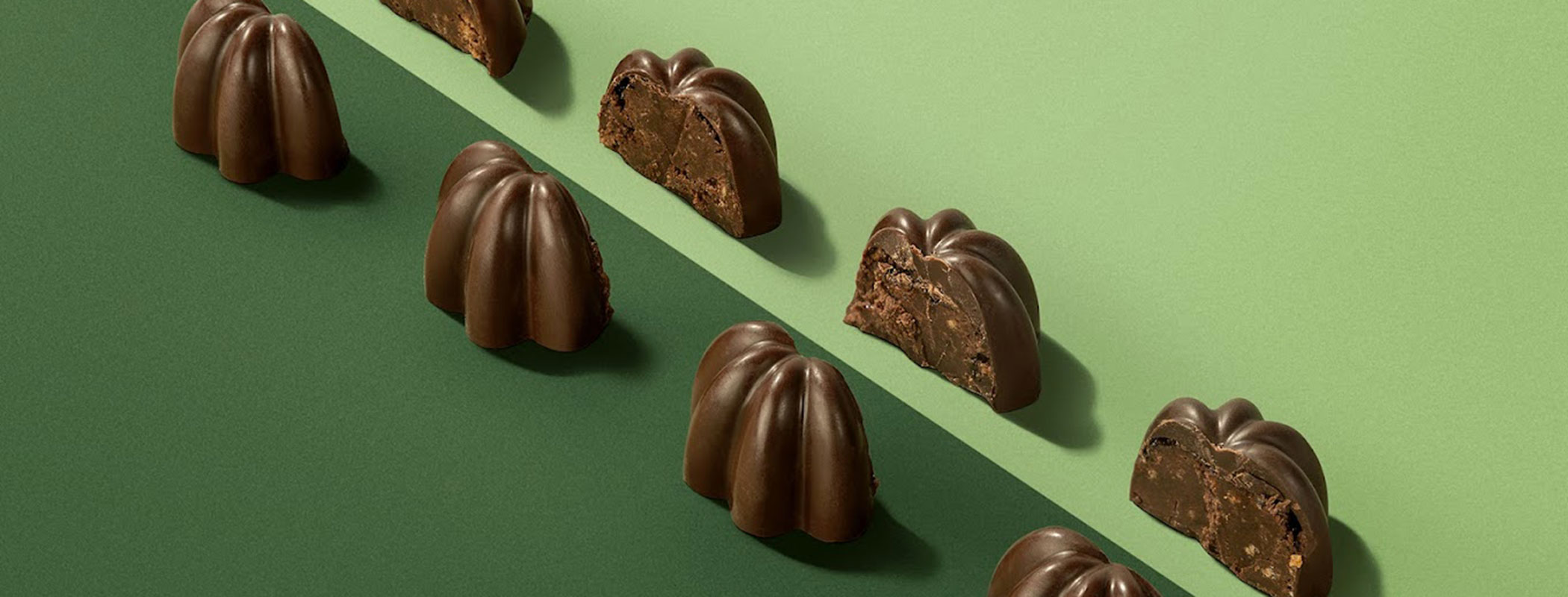 Cioccolato monorigine e nocciole Piemonte Igp sono gli ingredienti principali di cremini, giandujotti (classici, fondenti, al pistacchio e mango), praline assortite e specialità come il Chiambrettino (bonet in formato cioccolatino: un cuore di crema al cioccolato e amaretti, ricoperto da uno strato di cioccolato fondente con una goccia di caramello) e i Fiorellini (cioccolatini a forma di fiore).
