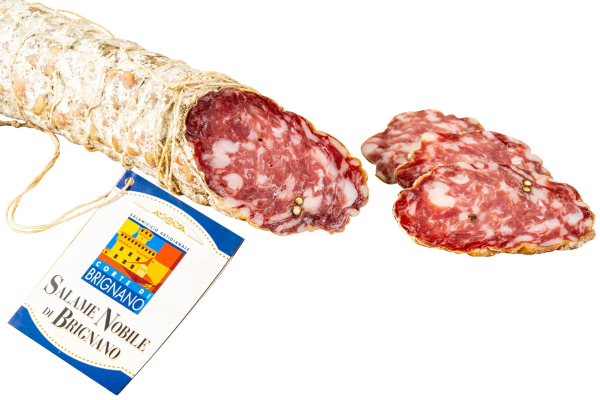 Tutte le fasi di lavorazione sono manuali, l’asciugatura avviene in celle a temperatura e umidità controllate e monitorate 24/24, mentre la stagionatura si svolge nell’antica cantina in pietra e cotto. Nel punto vendita annesso (aperto da mercoledì al sabato mattino e pomeriggio e la domenica mattina), troverete non solo il Salame Nobile, ma anche il “Cucito” insaccato in budello doppio cucito e stagionato almeno 5 mesi, la Muletta stagionata un anno, i Cortegiani, i più piccoli di pezzatura e più giovani come stagionatura.