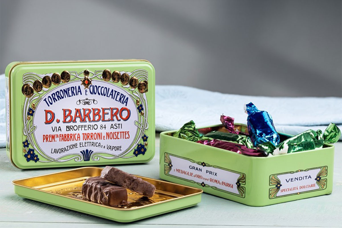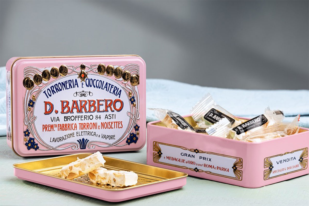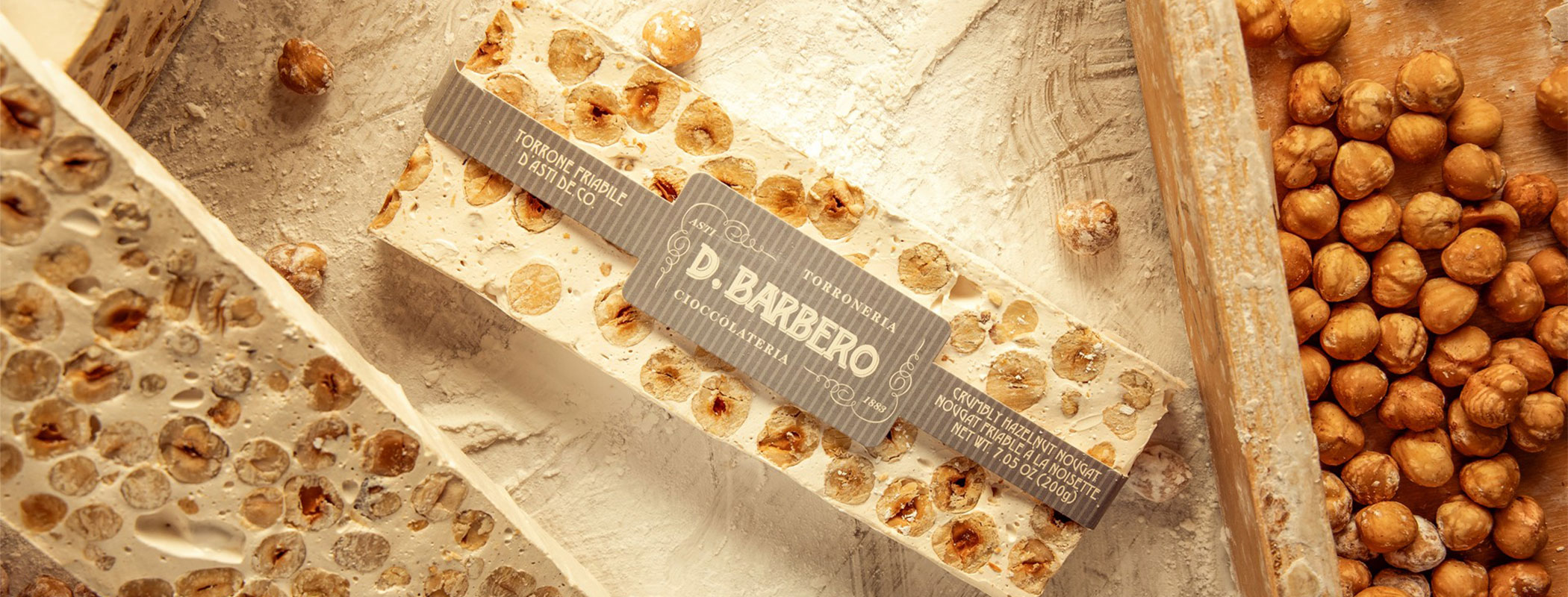 Mombercelli d'Asti, 1838: Filippo Barbero, confetturiere, inizia una storia di famiglia. Il figlio Melchiorre, nel 1883, fonda la ditta di produzione di torroni. Oggi, sette generazioni dopo, il torrone friabile Barbero è un'icona: nocciole Piemonte Igp (51%), miele millefiori locale e albume fresco, cotti a vapore per circa 7 ore e riposti a mano in stampi di faggio.