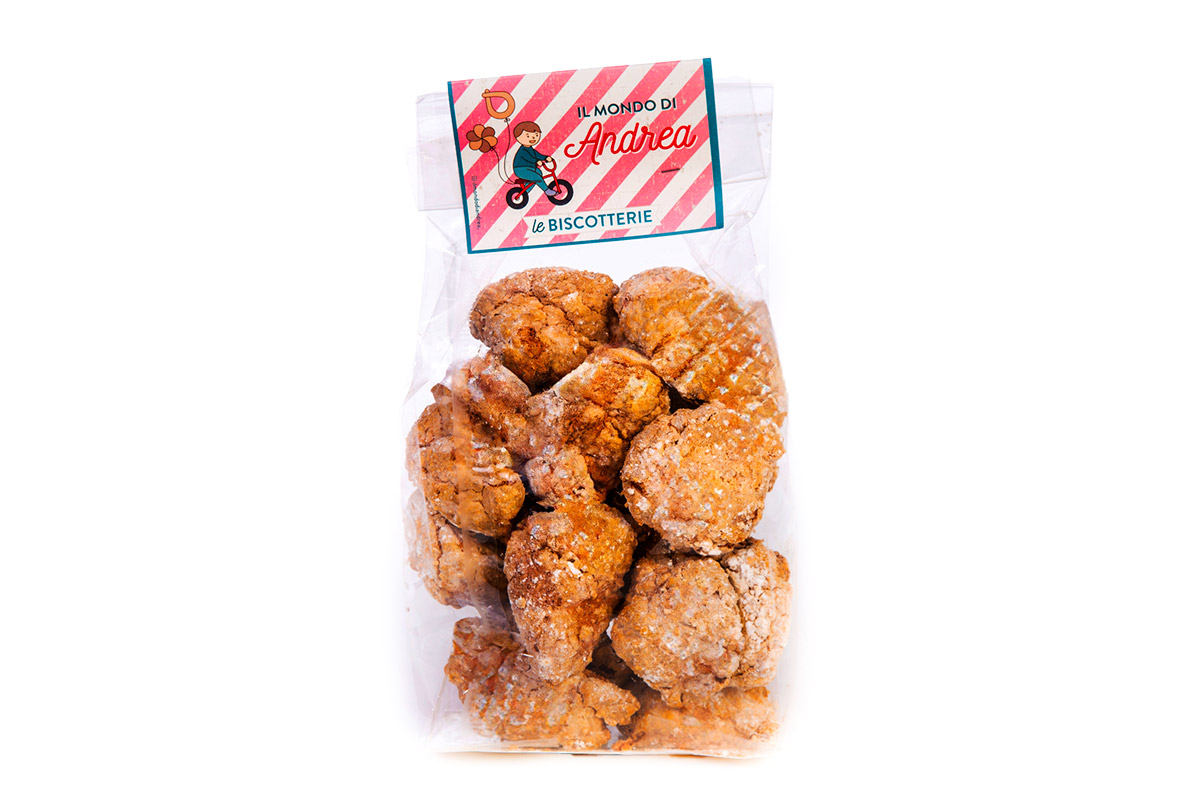 Il Mondo di Andrea riunisce artigiani del gusto che creano prodotti d'eccellenza, dolci e salati, provenienti da diverse regioni e paesi. Le materie prime, spesso locali e a volte prodotte direttamente da loro, vengono accuratamente selezionate per garantire un sapore autentico. Tra i prodotti offerti ci sono biscotti, grissini, arachidi salate, pistacchi, schiacciatine.