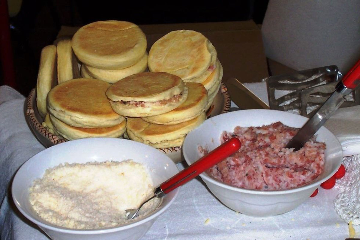 Un tempo questi dischi di pasta separati da foglie di castagno essiccate venivano farciti caldi con la cunza, un saporito trito a base di lardo, pancetta, aglio e rosmarino, ancora oggi considerato il miglior accompagnamento per queste specialità. Troverete anche salumi, marmellate, miele, succhi, cotechini, zamponi, Parmigiano Reggiano di montagna stagionato 30 mesi.
