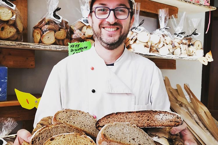 Fabio Albertoni è un panettiere che, partendo dal laboratorio di Scopello, in Val Sesia, ha già creato tre punti vendita proponendo prodotti con farine scelte macinate a pietra, ricette creative e della tradizione valligiana: come il pane walser preparato secondo una ricetta del luogo.