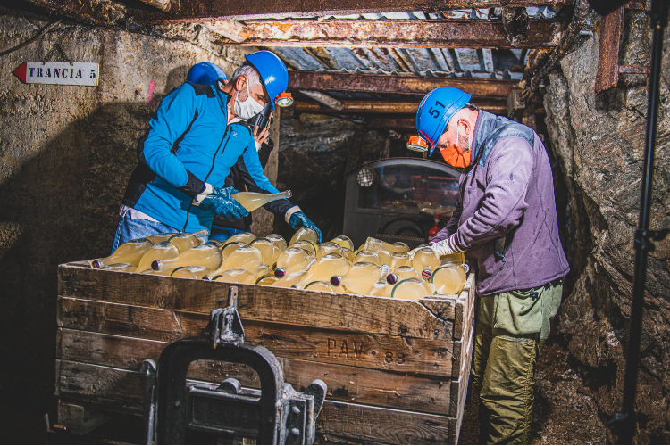Dall’agronomo e imprenditore nel settore delle cave Mauro Camusso, nasce l’idea di affinare il vino nelle miniere di talco dell'Ecomuseo della Valle Germanasca, che garantiscono una temperatura costante di 10 °C e l'umidità fissata sull'80-90%. Il progetto prende vita grazie al felice incontro con l’enologo Gianfranco Cordero, per un’idea di viticoltura di qualità che presenta come elemento distintivo l’aver puntato sui vini bianchi e sulle bollicine, impiantando così uve inedite per il territorio dell’areale pinerolese, quali riesling, sauvignon blanc, pinot nero, oltre alla mitica malvasia moscata e al raro autoctono bianc vert.