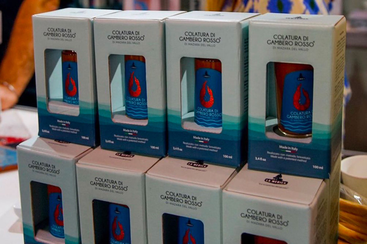 Maria Chiara Valdemone e Giuseppe Gaudioso, giovani di Mazara, hanno ideato un innovativo processo sostenibile per la produzione della Colatura di Gambero Rosso® di Mazara del Vallo. Dopo cinque anni di studi, il loro brevetto trasforma il carapace, normalmente considerato scarto, in una preziosa risorsa. Il loro metodo estrae con purezza le uova e i succhi dal carapace, creando una colatura pregiata senza l'aggiunta di sale, a differenza della tradizionale colatura di alici.
