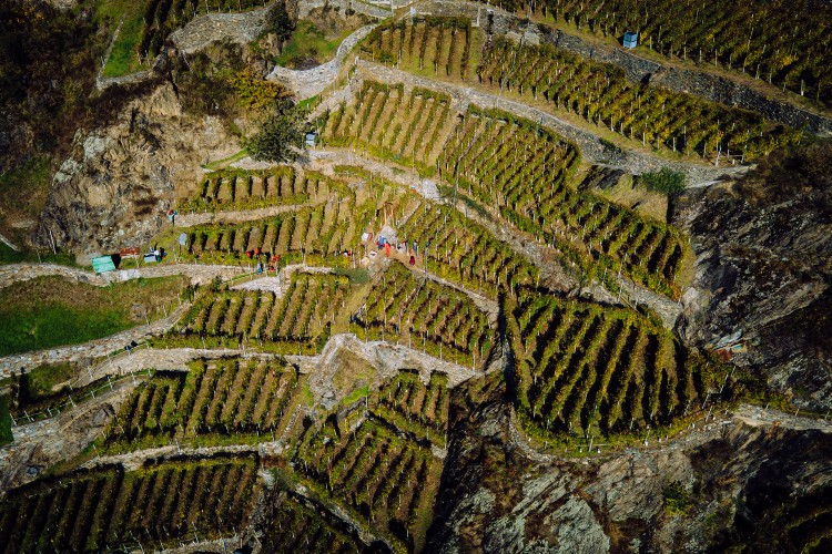 I terrazzamenti vitati si estendono su 12 ettari nei comuni a Sondrio e nelle sue vicinanze. Il suolo sabbioso derivato dalla disgregazione rocciosa e l’esposizione a sud sono condizioni peculiari che consentono alle uve di raggiungere sempre il giusto grado di maturazione e mineralità. La cantina ha sede nell’antico centro storico di Sondrio, in una zona molto pittoresca fatta di vicoli stretti e tradizionali case in pietra.