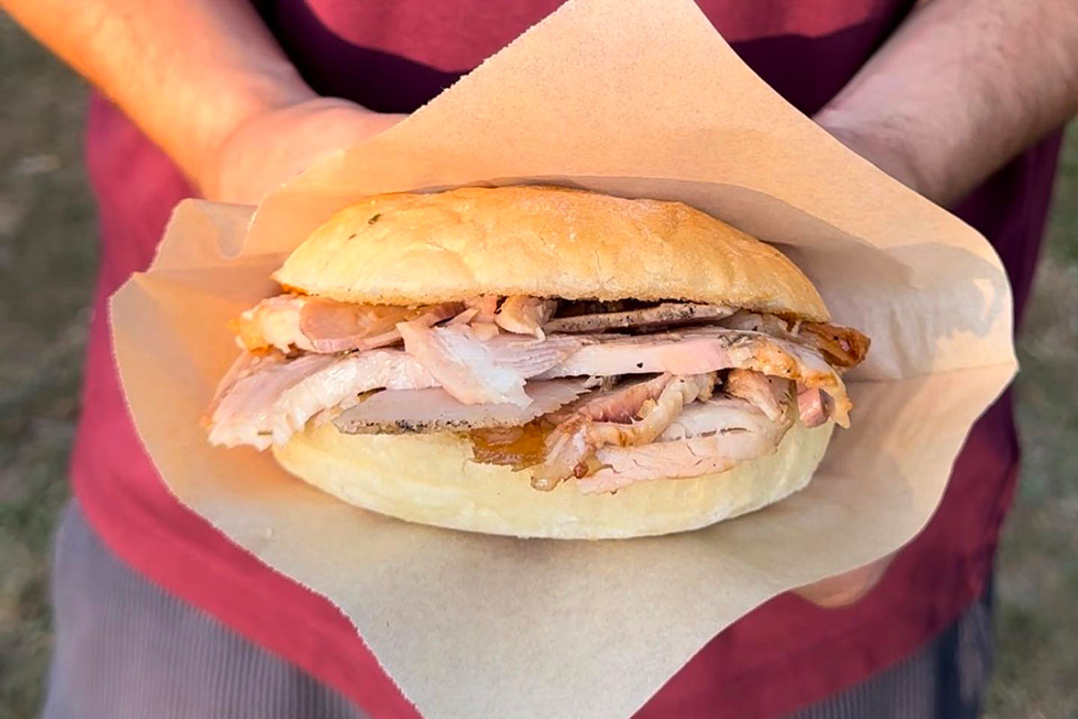 • panino con porchetta di Ariccia , salsa harissa piccante € 10