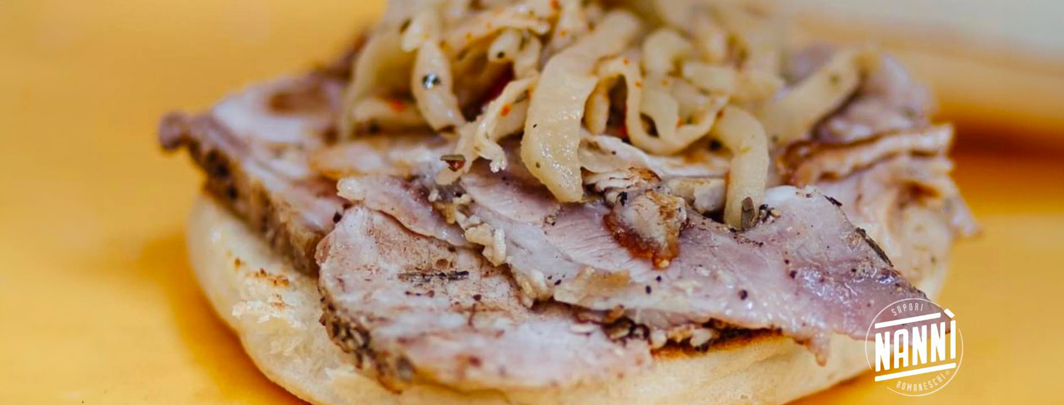 • panino con porchetta di Ariccia, melanzane sott'olio e scaglie di pecorino di Amatrice € 12