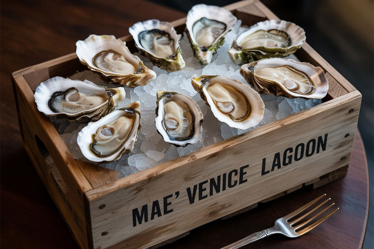 La laguna di Venezia è il teatro dove l’azienda OSTREAL cura l’allevamento artigianale Ostrica Maè: vengono selezionate a mano e cresciute con lentezza per sviluppare una carne compatta, un guscio robusto e un profilo aromatico raffinato.