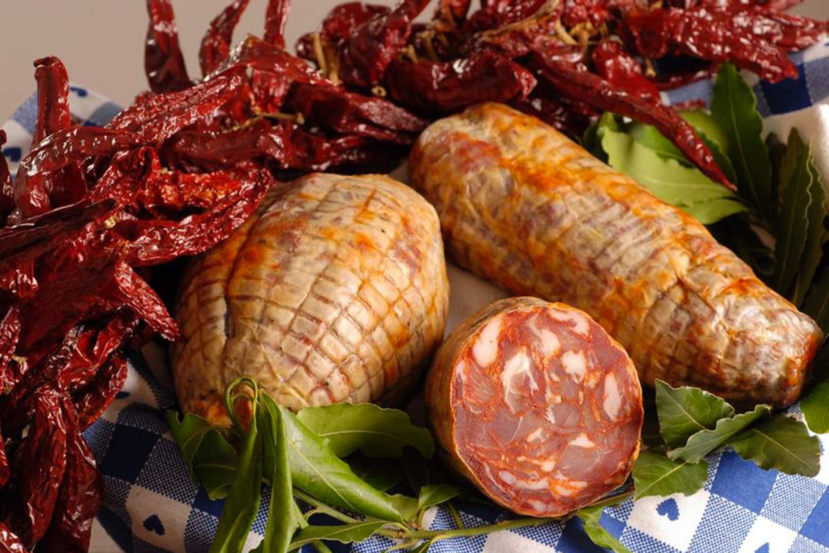 A Roccaspinalveti, dove le famiglie si tramandano da generazioni ricette dell’arte norcina, Michele Piccirilli, dopo una tesi di laurea sull’argomento, ha deciso di dedicarsi con orgoglio a una specialità del territorio vastese: la ventricina. La prepara utilizzando carne suina tagliata a mano di coscia, lombo e pancetta, impastata con sale e polvere di peperone di Altino, insaccata in muletta suina e, dopo un’asciugatura di 40 giorni con successiva sugnatura, la lascia stagionare in cantine naturali per almeno 5 mesi.
