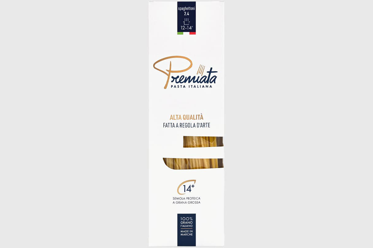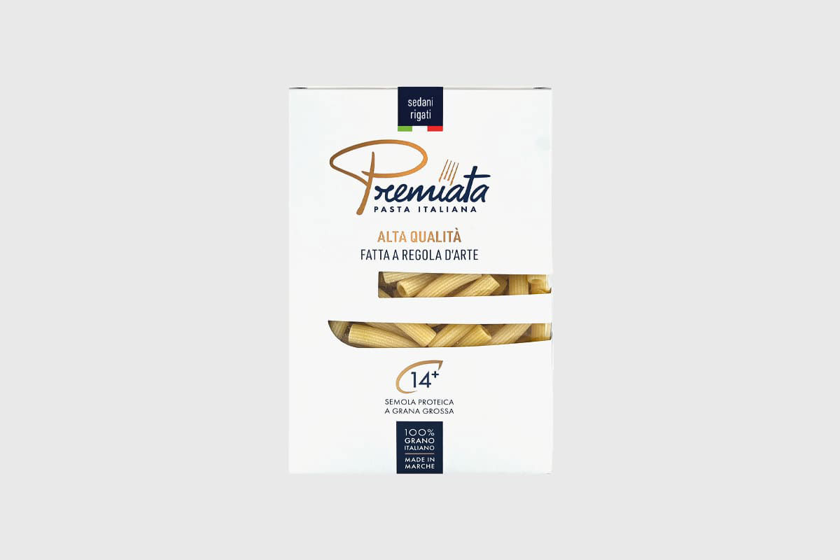La pasta di Premiata nasce da una selezione dei migliori grani duri di filiera del territorio delle Marche ed è lavorata artigianalmente nel rispetto del disciplinare ALTA QUALITÀ che impone un attento controllo qualitativo della semola e di tutti i processi di lavorazione. Essiccata lentamente e a bassa temperatura, tiene la cottura e conserva il sapore, il profumo ed il colore del grano appena raccolto.