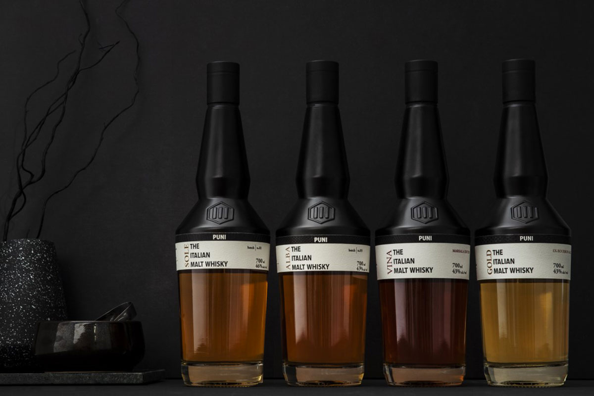 Questo procedimento è seguito da una doppia distillazione nei due alambicchi scozzesi e l’invecchiamento in botti diverse. Sono tre i whisky in produzione continuativa: Puni Gold, Puni Sole e Puni Vina, rispettivamente invecchiati in botti di bourbon, bourbon e PX-Sherry, e Marsala. Due, invece, le linee di edizione limitata: AURA, linea a gradazione piena, e ARTE, una linea di espressioni creative e fuori dagli schemi.