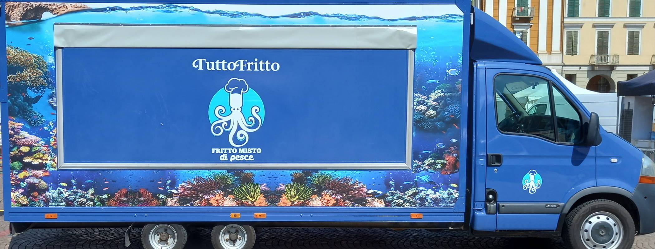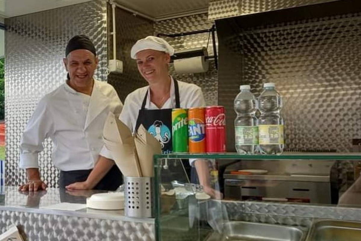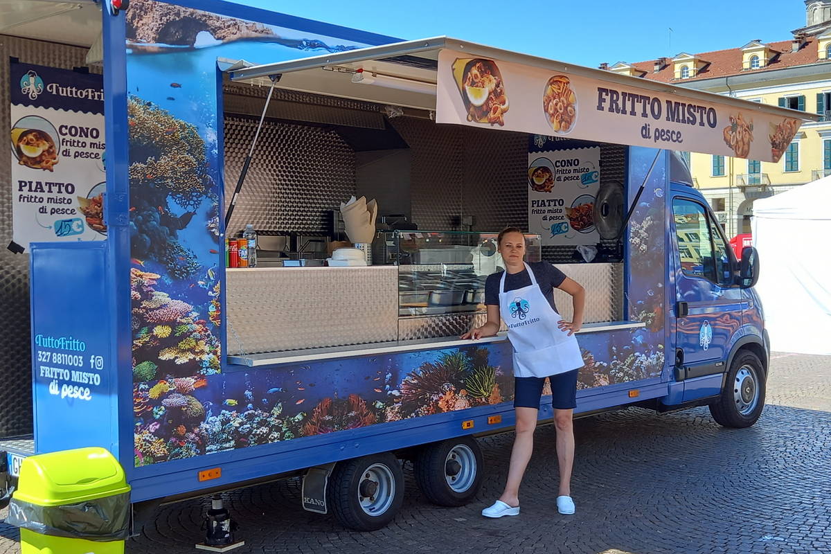 Una frittura di pesce di qualità. È quella che proporrà a Golosaria Tuttofritto, realtà piemontese che ha debuttato a Golosaria Milano per la prima volta nel 2022. La loro sede è a Santa Vittoria d'Alba, ma sono girovaghi per vocazione, ovunque sia necessario portare la loro frittura mista di pesce - composta da totano, alici, olive di pesce all'ascolana, gamberi sgusciati - proposta al piatto o in cono.