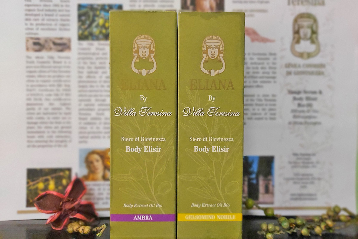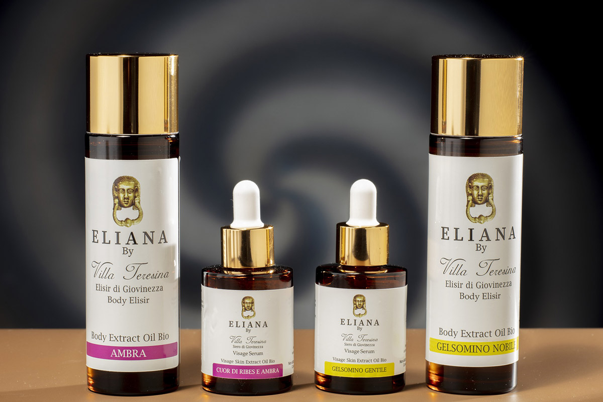 Forte di questa preziosa materia prima, sono nate anche due linee cosmetiche biologiche naturali al 100%: “Visage Serum” e “Body Elisir”. La linea giovinezza “Eliana” propone una crema viso, un contorno occhi (insieme a olio di mandorle dolci), acqua micellare detergente (aloe, calendula e betaine naturali), quindi una linea completa visage con gelsomino, ribes, ambra.